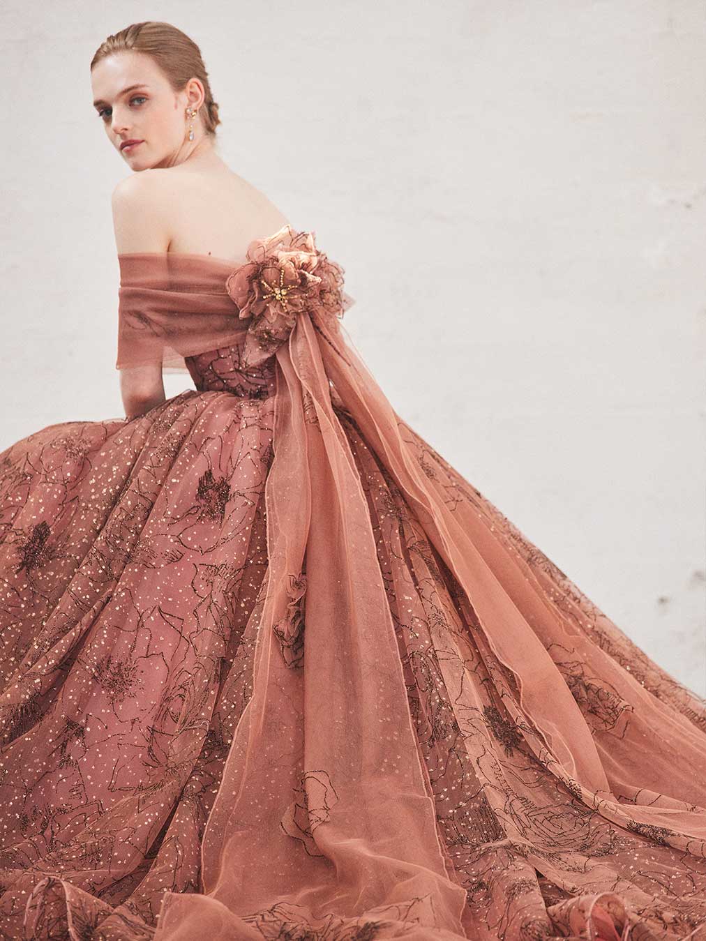 イブニングドレスなら、人気の軽やかな素材や明るいカラーの中でも、
