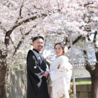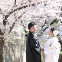 撮影日当日は心配していた天候にも恵まれ、桜は満開の様子からお二人を祝福しているような1日でした。