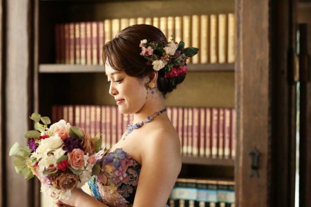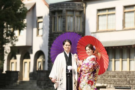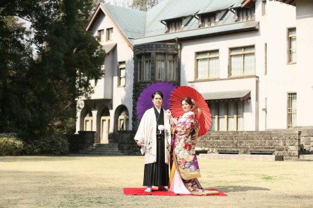 細川侯爵邸では色打掛とカラードレスにてご撮影いただきました。
