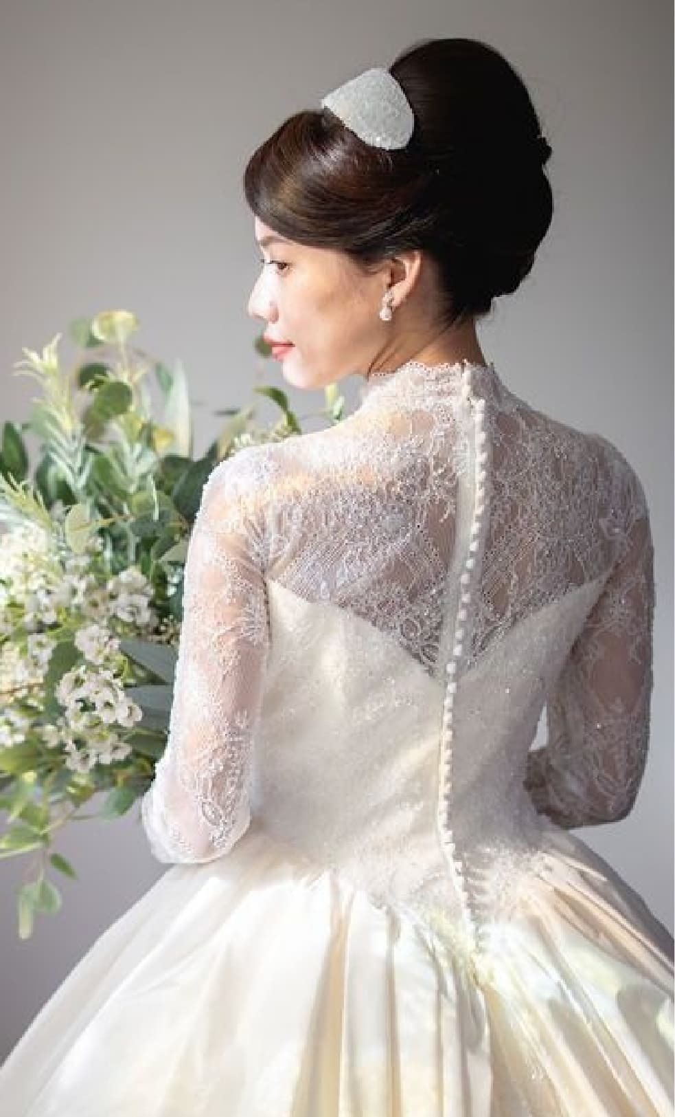 創業者・桂由美の美学が息づくYUMI KATSURA 東京の建物。本来なら限られた方しか立ち入れない「エグゼクティブサロン」を舞台に、贅沢な撮影が叶います。光を湛える美しいステンドグラス、そしてドレスのトレーンを美しく際立たせる優美な螺旋階段。細部にまで意匠が凝らされたフォトジェニックな空間は、一分一秒が映画のワンシーン。王道でありながら、他の追随を許さない圧倒的な気品を纏う、最高の一枚を約束します。
