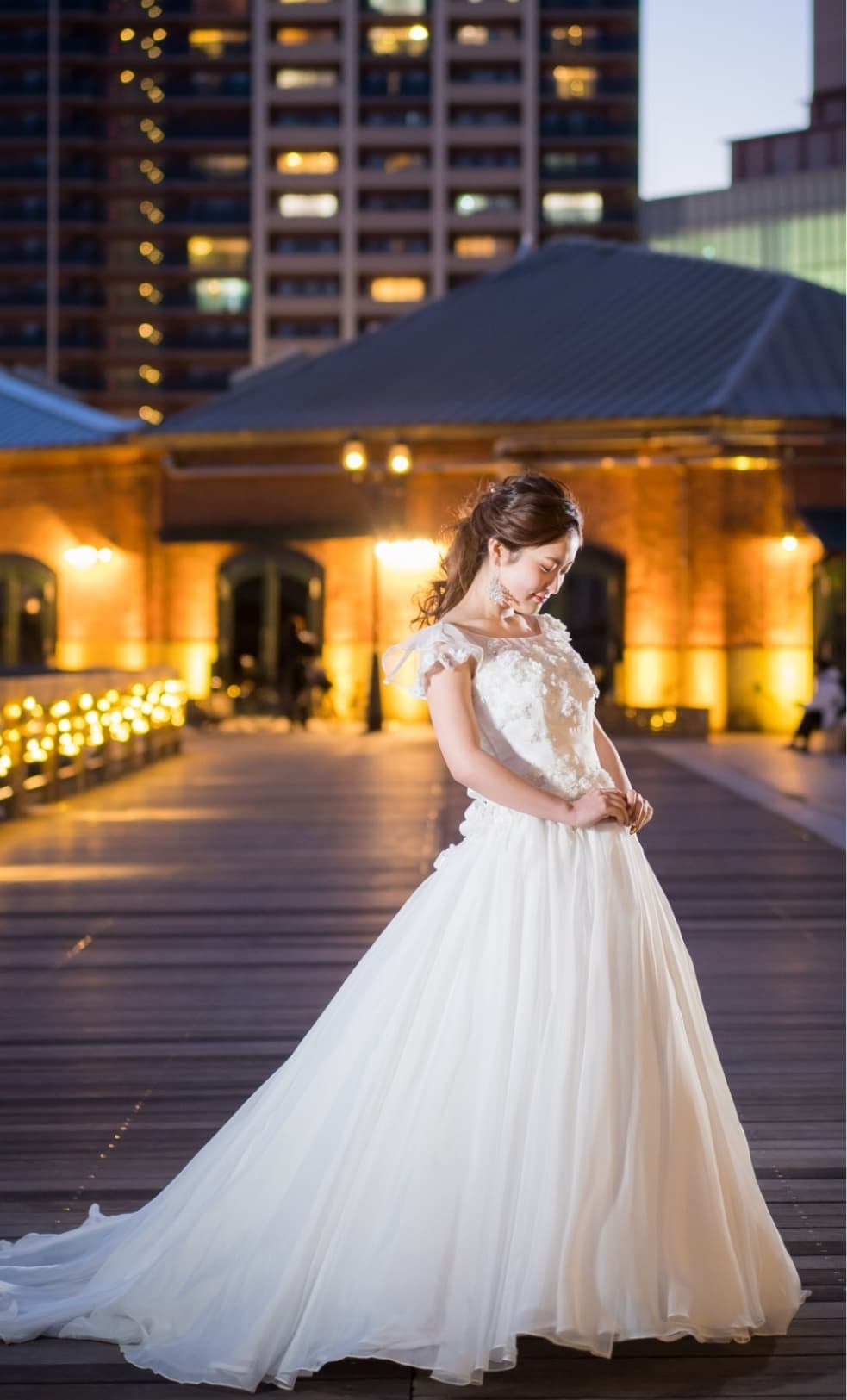洋館が並ぶ旧居留地のクラシカルな街並みから、海風を感じるハーバーランドの夜景まで。神戸は、歩くたびに表情を変えるフォトジェニックな港町です。異国情緒あふれるモダンな通りはウェディングドレスとの相性が抜群で、まるでパリやロンドンの街角で撮影しているかのような洗練された一枚に。ナイト撮影では、メリケンパークの輝きを背景に大人なロマンティックを演出。都会的でお洒落、そしてどこか懐かしい。そんな贅沢な欲張りを叶えてくれるのが、神戸の魔法です。