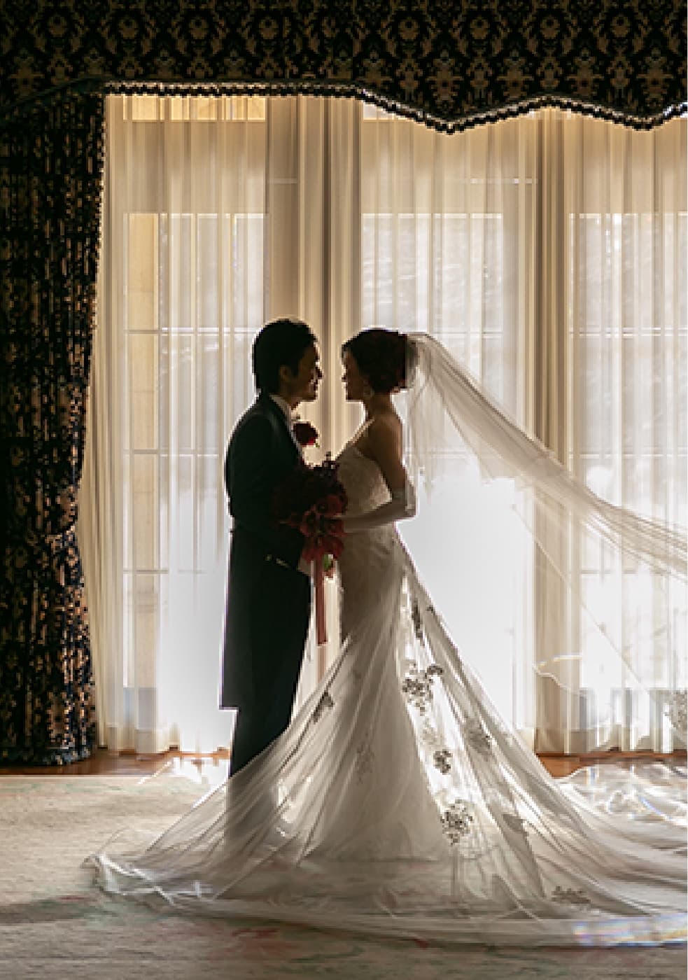 ・学生時代にユミカツラを知っていただいてから、それからウェディングドレスは桂のドレスを着たいと思って頂いて、桂ならではのユミラインをご決定頂きました。旧前田侯爵邸、ブーケもご自分でイメージに合う物をお探しになられご準備頂きました。今回のインスタ掲載も他の方の参考になるならとご快諾下さいました。